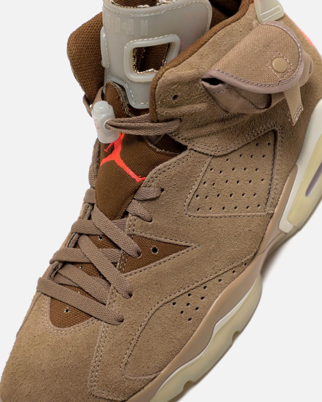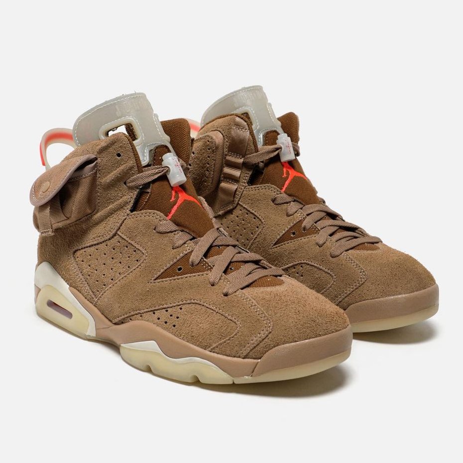 La collaboration entre Travis Scott et Jordan Brand continue avec une nouvelle Air Jordan 6 « British Khaki » qui semble assez différente de la première.