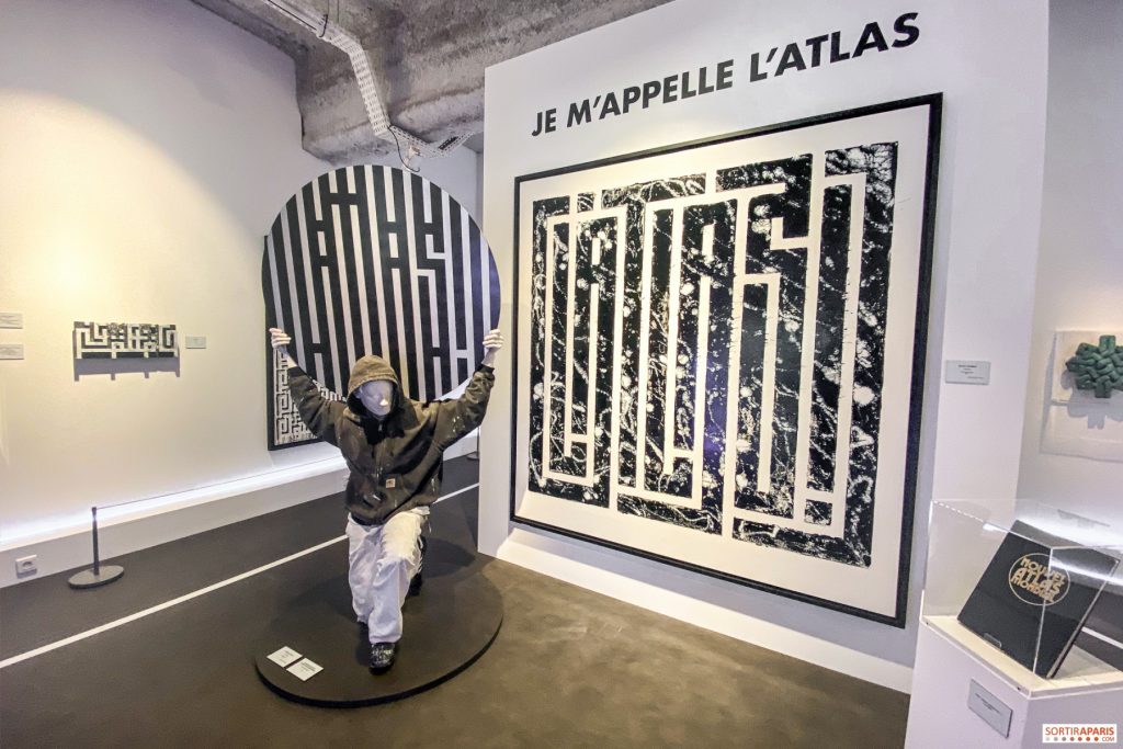 Son exposition « Walk the Line » nous offre également des pièces visibles en réalité augmentée, des pièces archéologiques prêtées par le Louvre, des oeuvres de Keith Harring et Jacques Villeglé ainsi qu’un voyage immersif dans l’histoire du graffiti.