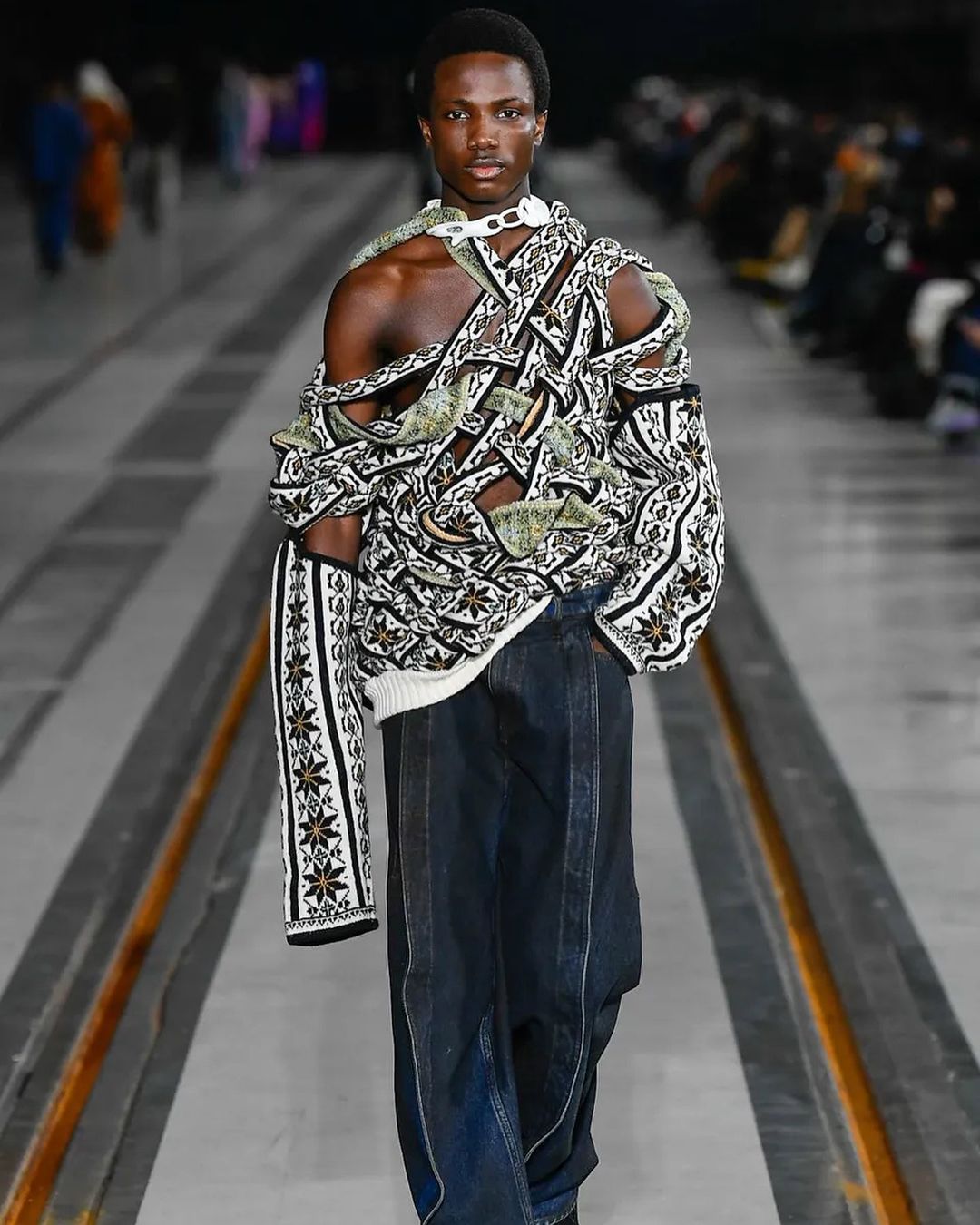 « L’esthétique avant-gardiste de Glenn Martens, expérimentale et toujours à la croisée du masculin, du féminin, de l’art et de l’architecture, a résonné avec l’ADN Gaultier » – Maison JPG