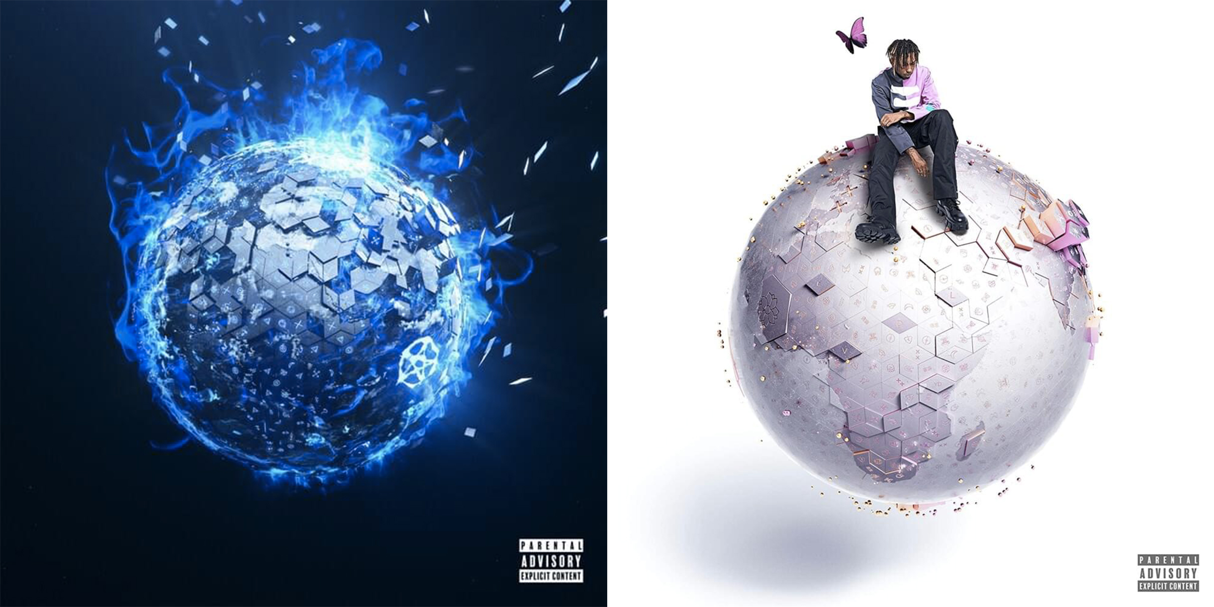 On découvre cover qui est évolutive entre la version normale et la deluxe. Là où l’on avait une cover blanche épurée et paisible, on rencontre pour cette Dark Edition une cover beaucoup plus sombre. Et cela avec une dominante de bleu marine, une planète qui se désintègre sous des flammes bleues, avec un pentagramme, et l’absence de vie (le rappeur et le papillon).
