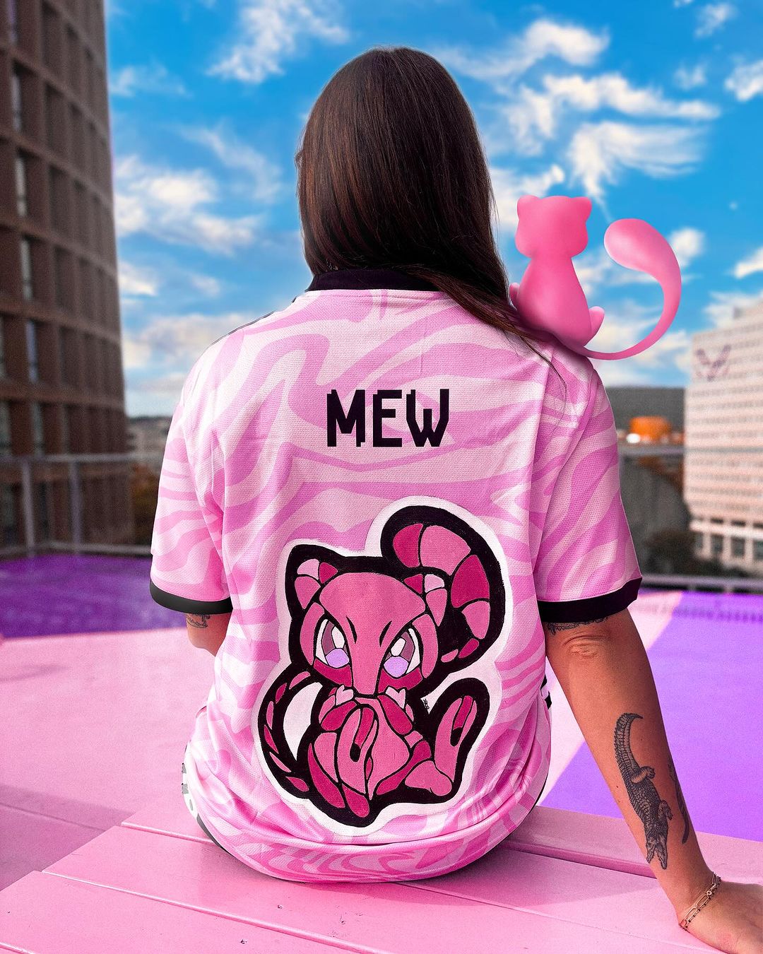 Désormais YugoDraws, le Rouennais met à crédit sa créativité afin de donner vie à ses passions que sont les mangas, le football, le cinéma, les jeux vidéos et le rap. Pour ses illustrations, à l’instar de nombreux artistes digitaux, Hugo utilise l’application Procreate. Concernant ses customs, il utilise une peinture textile de haute qualité afin que ses créations tiennent sur le long terme et ne perdent pas de leur souplesse. Avec soin, il parvient à se démarquer de ses confrères en associant Pokémon au football. Cela donne un design original présentant Mew au dos d’un jersey rose. Authentique.