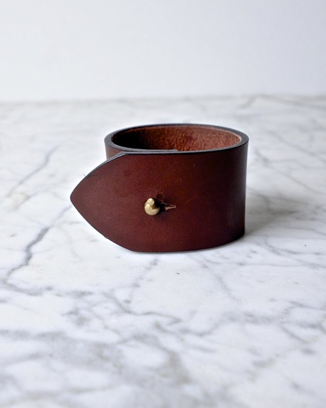 La simplicité de cette manchette, réalisée en cuir tannage végétal, est une garantie de bon goût. Avec le temps sa patine vous surprendra.