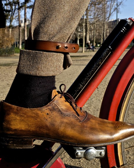 Avec cette pince, réalisée en cuir tannage végétal, protégez efficacement votre pantalon, contre les agressions de votre chaîne de vélo. Pédaler c’est bien, avec style c’est mieux !