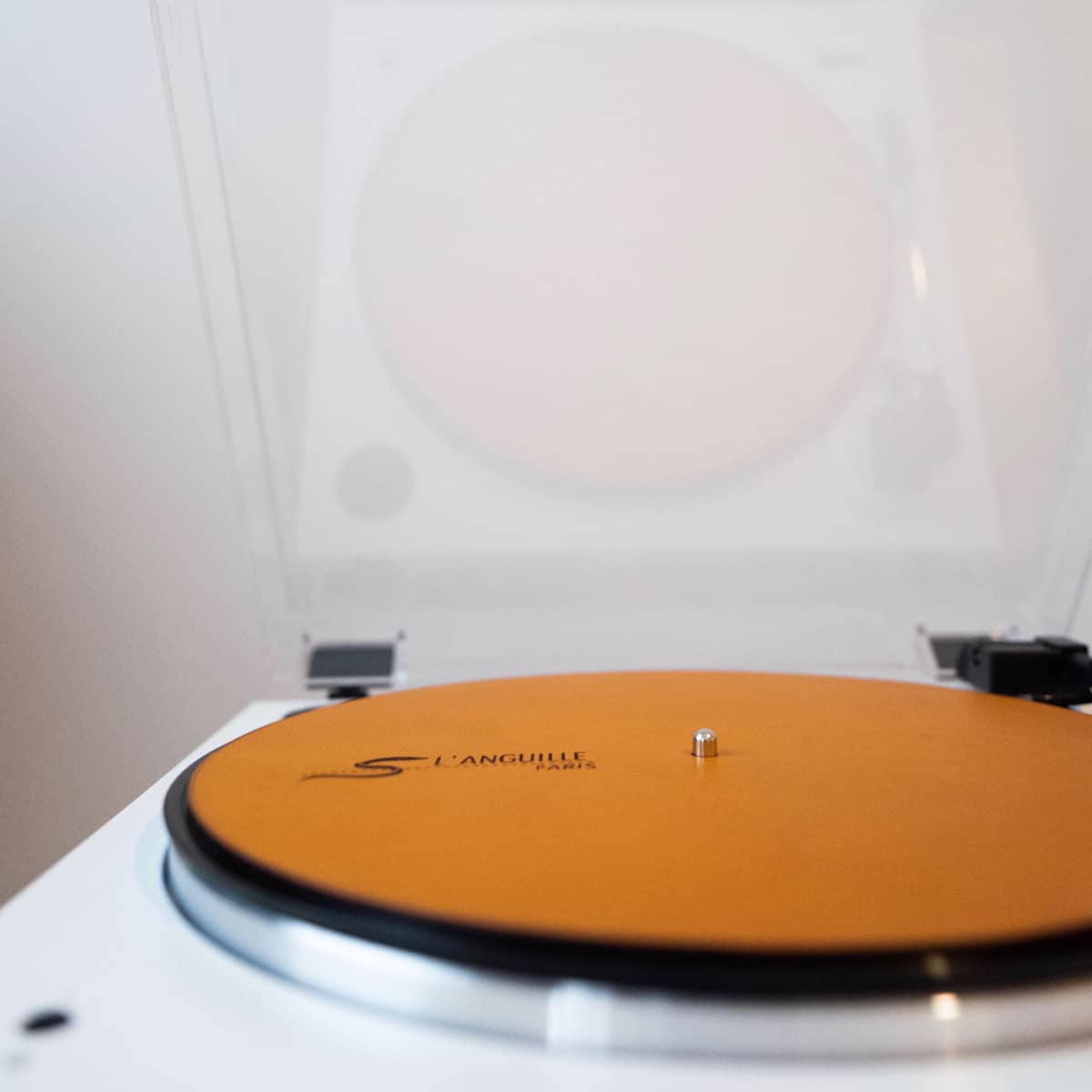Avis aux névrosés du saphir, qui souhaite revêtir leur platine vinyle d’une parure digne de recevoir les galettes les plus chères à leurs tympans ! L’Anguille a imaginé spécialement pour vous, un plateau en cuir, pour remplacer votre mauvais tapis en plastique. Quel plus beau cadeau pour votre platine ? Vous avez des fourmis dans le caleçon, alors dansez !