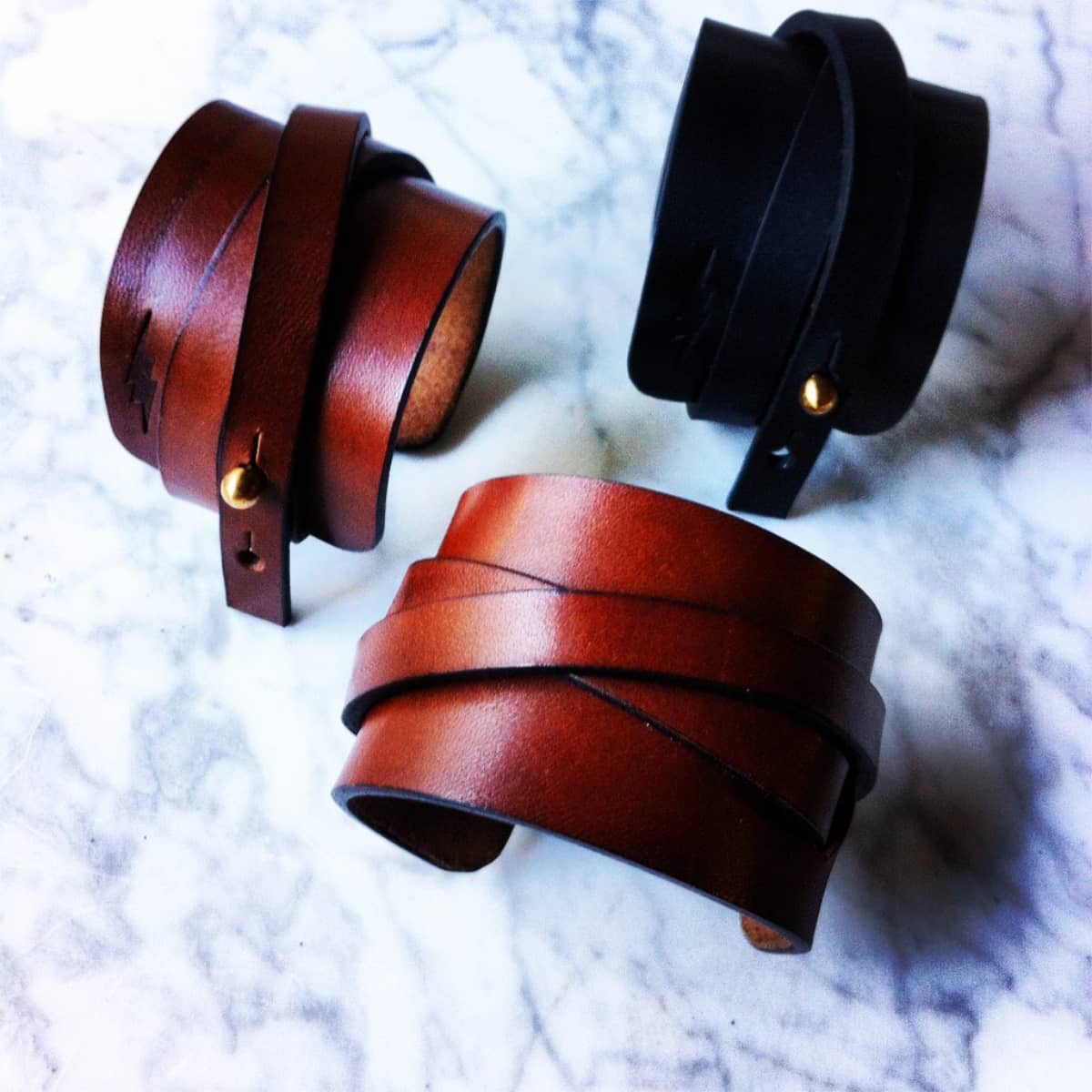 La manchette Spartacus est la première interprétation du poignet de force réalisée par L’Anguille. Ce type de bracelet de force était porté par certains travailleurs de force pour soutenir leur poignet.